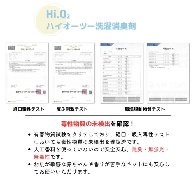 ・有害物質試験もクリアしており、経口・吸入毒性テストにおいても毒性物質の未検出を確認済です。